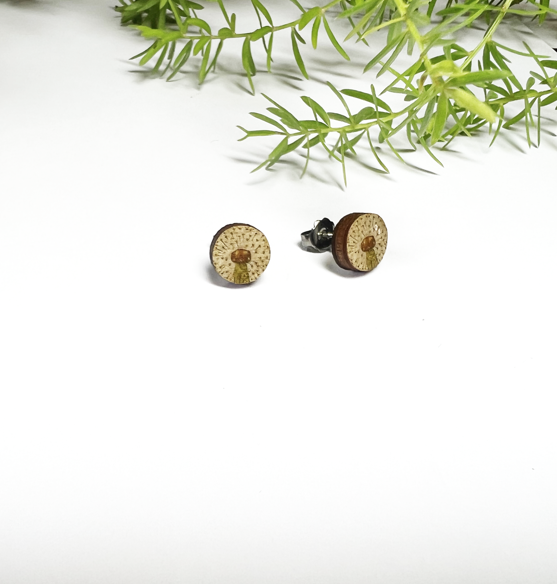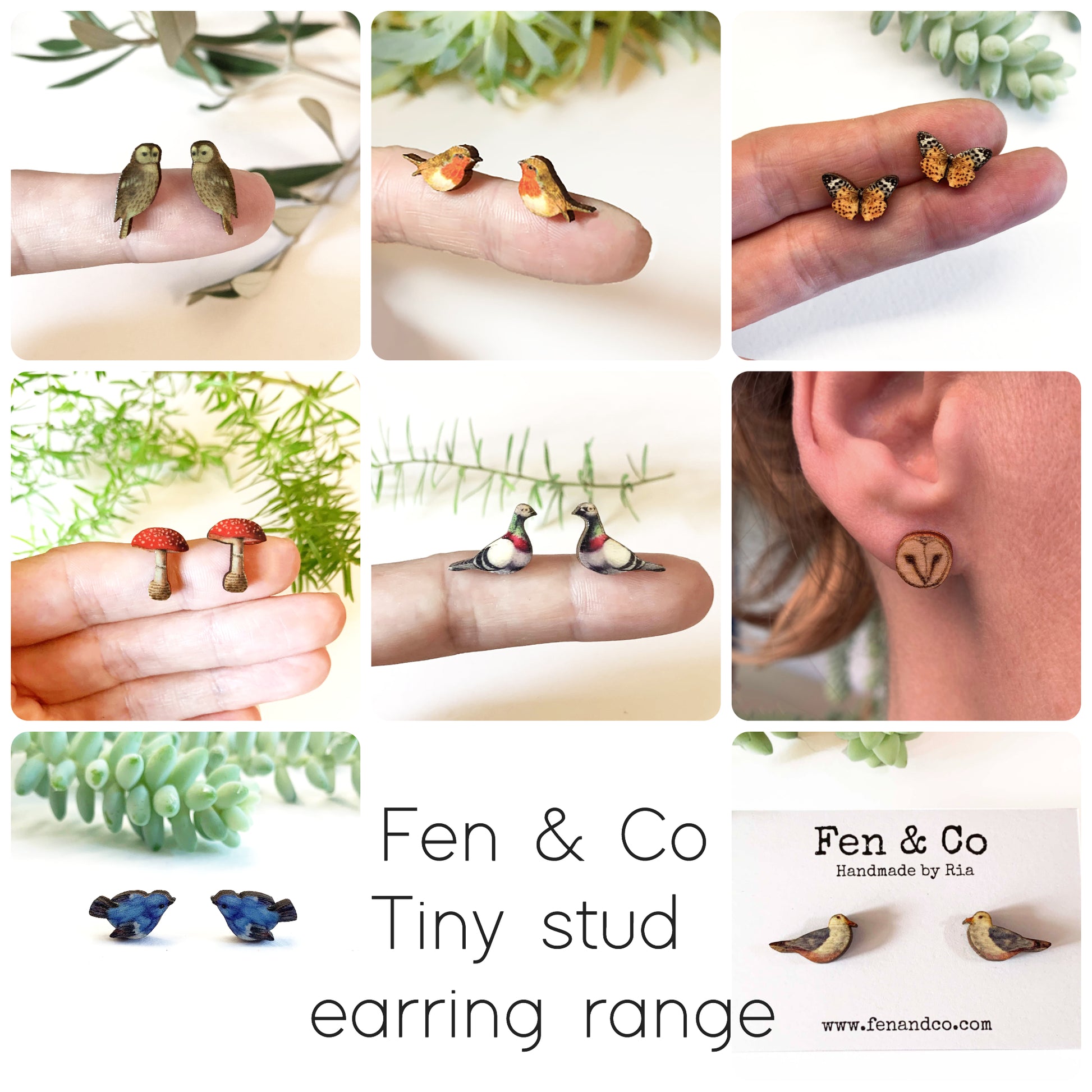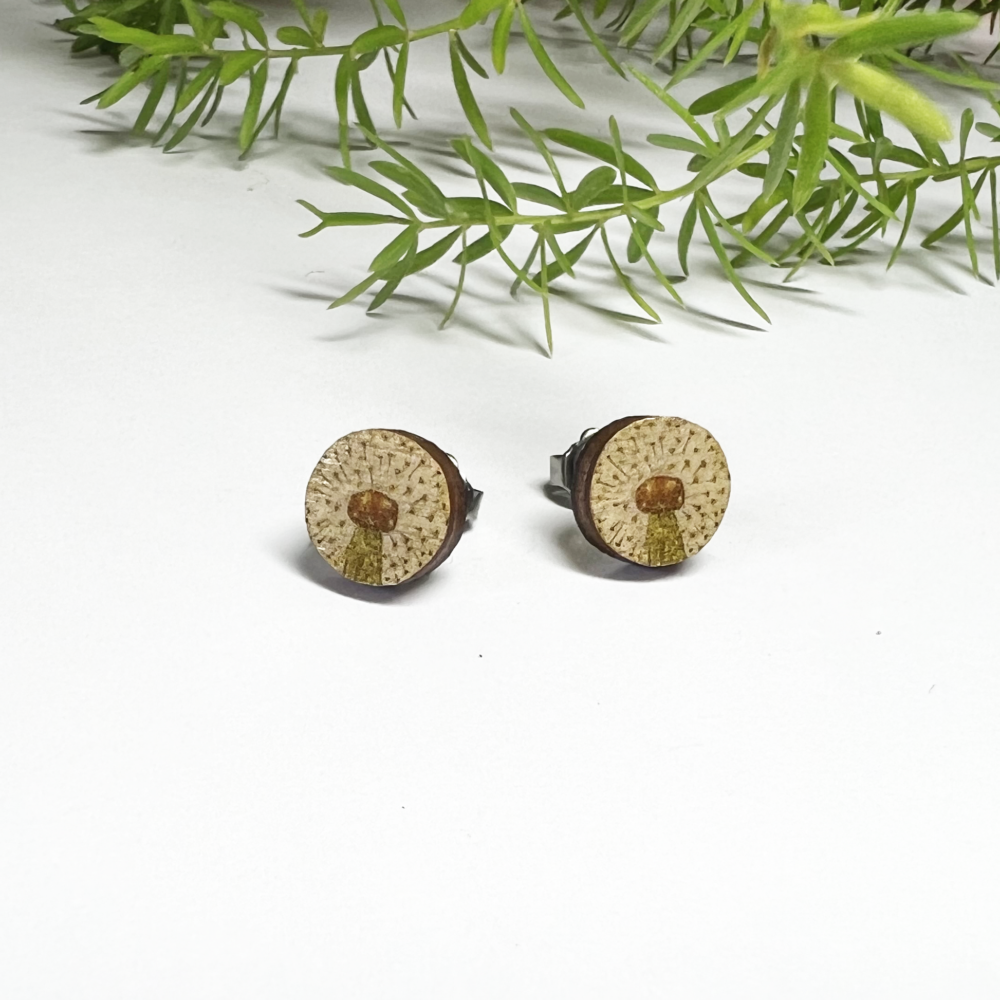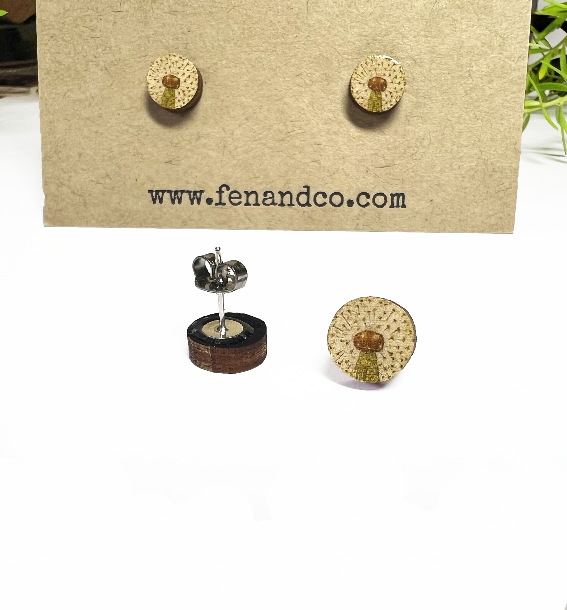 Each pair is made to order using a restored antique image printed directly onto sustainably grown 3mm thick Birch wood, laser cut and glossed by hand. The backs are painted black with a waterproof acrylic paint.