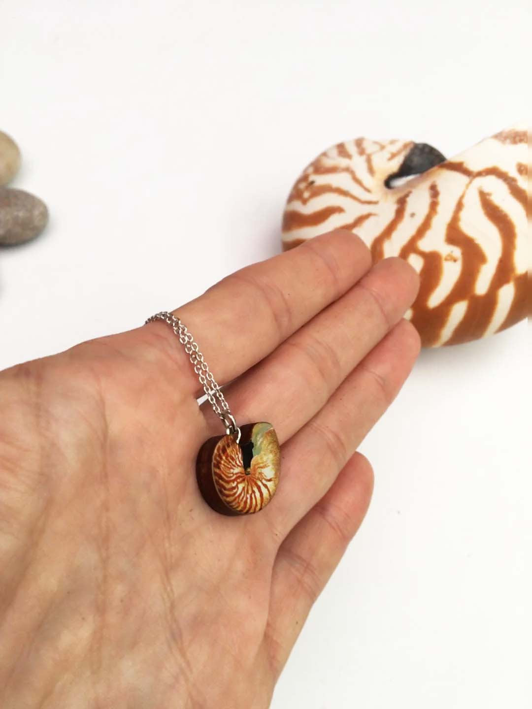 Your nautilius will come ready for gifting on recycled branded Kraft card, wrapped in tissue paper and placed in an organza bag. All my packaging is plastic free and made from high end recycled material.