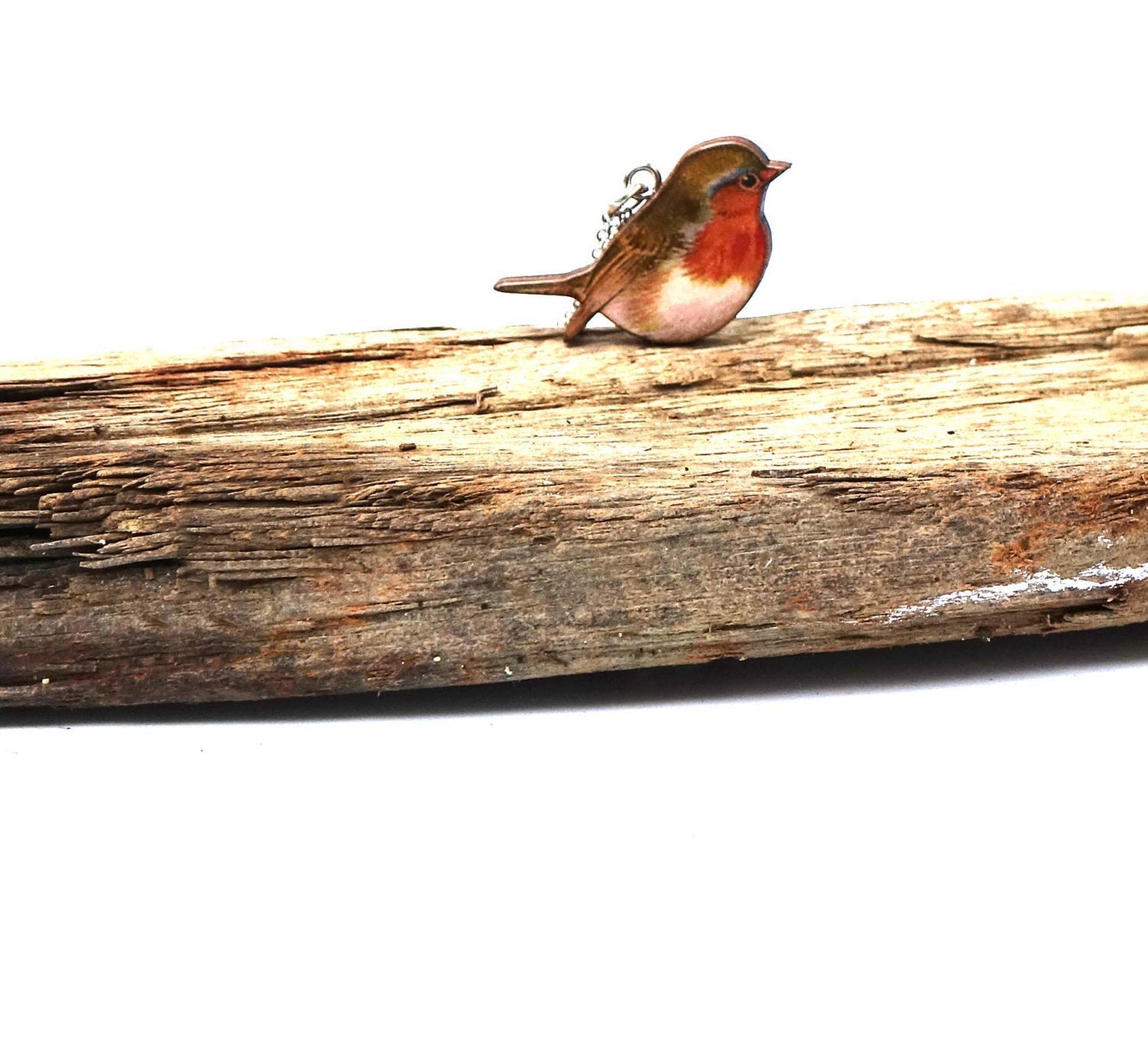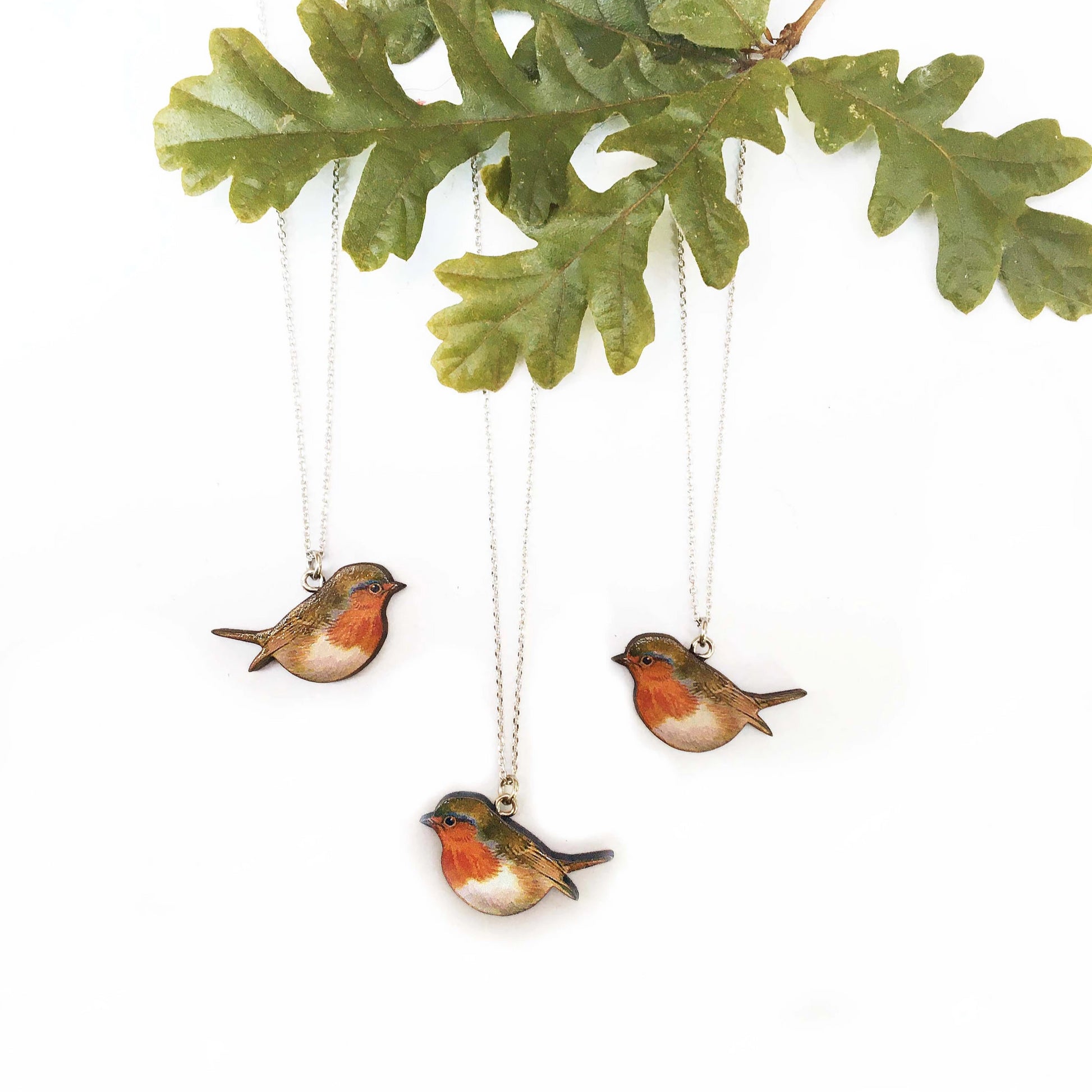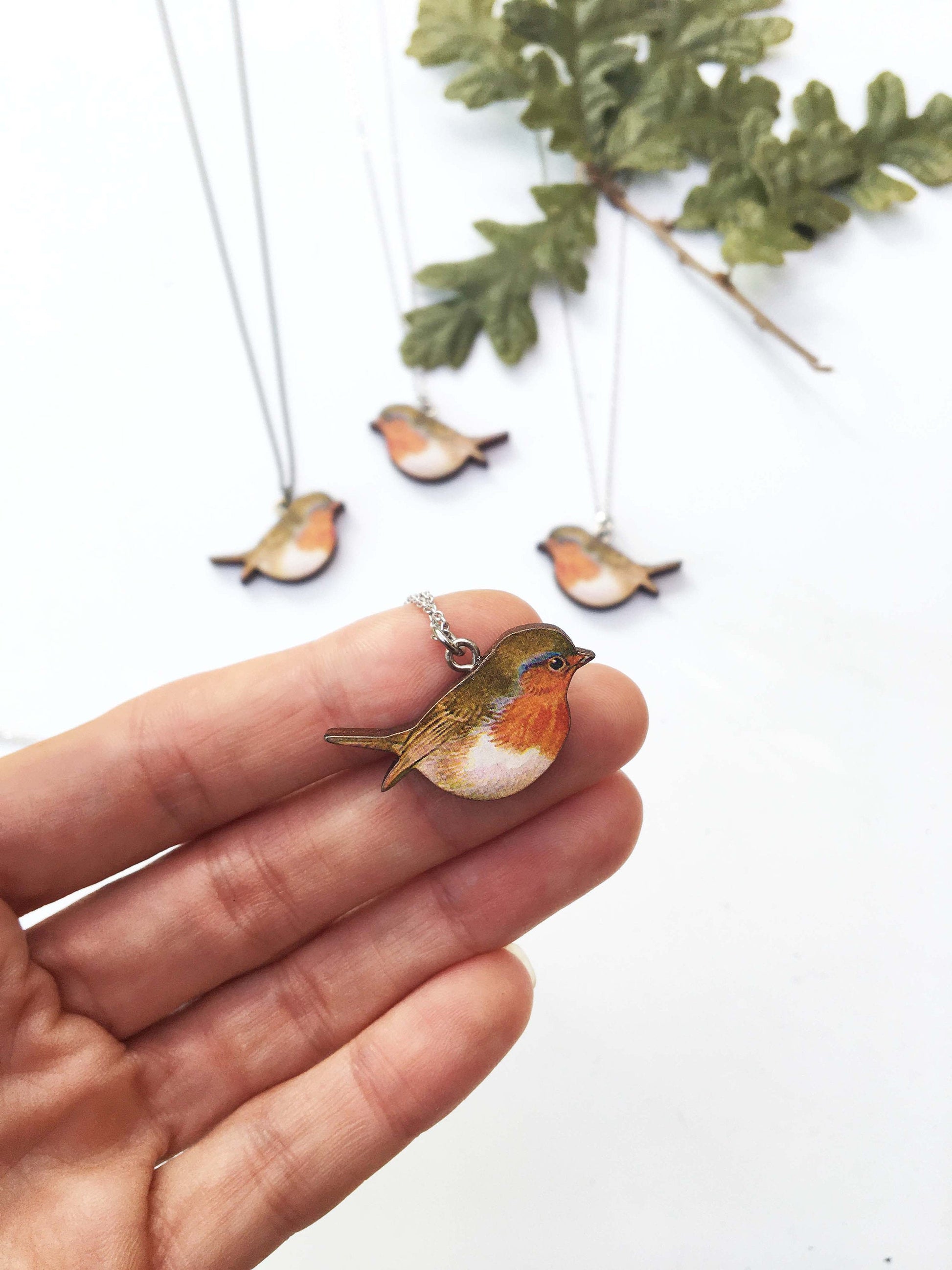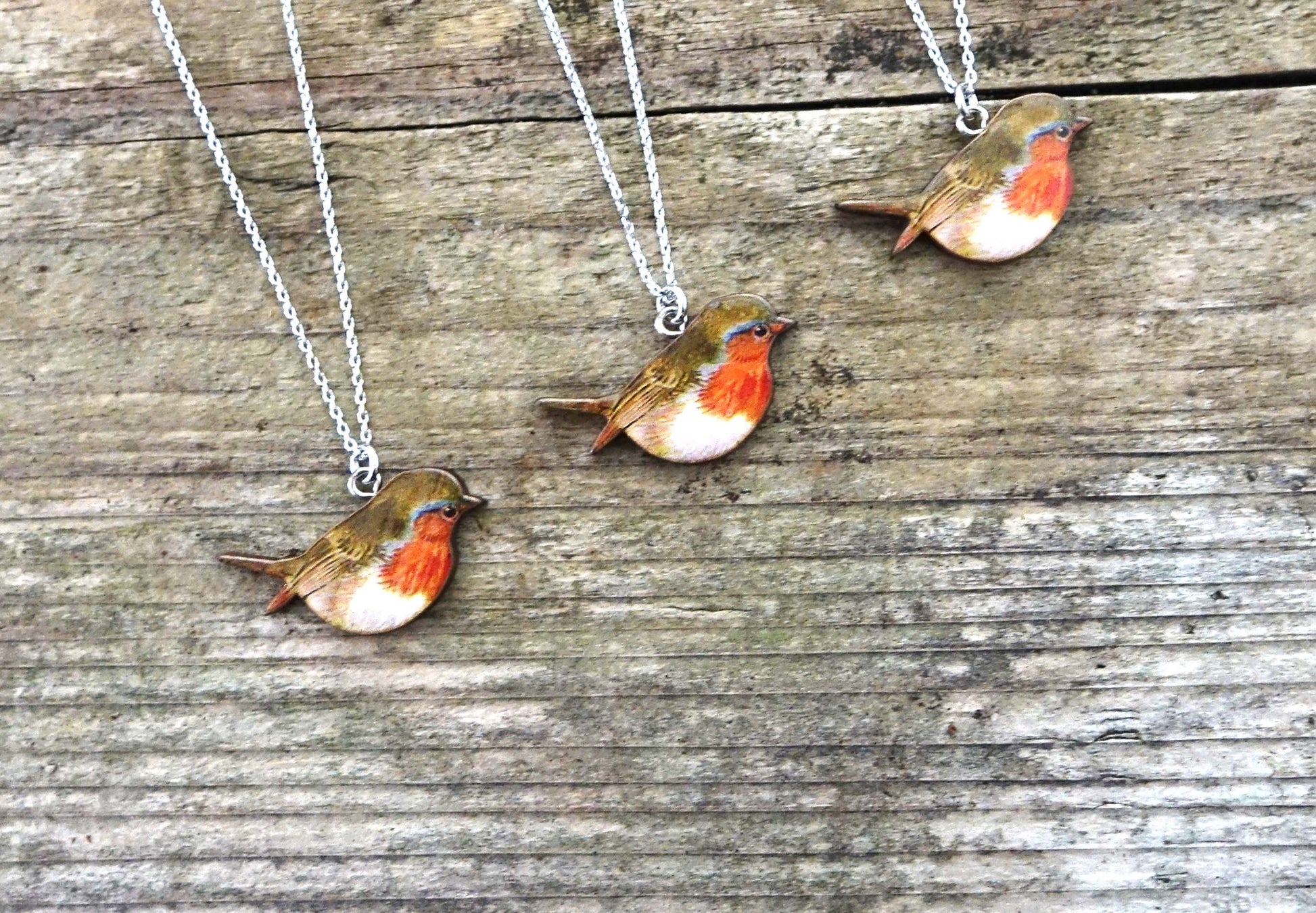 Fen & Co cute handmade Robin necklace made in my studio over looking the woods. This gorgeous tiny Robin necklace is made using one of my best selling vintage images.