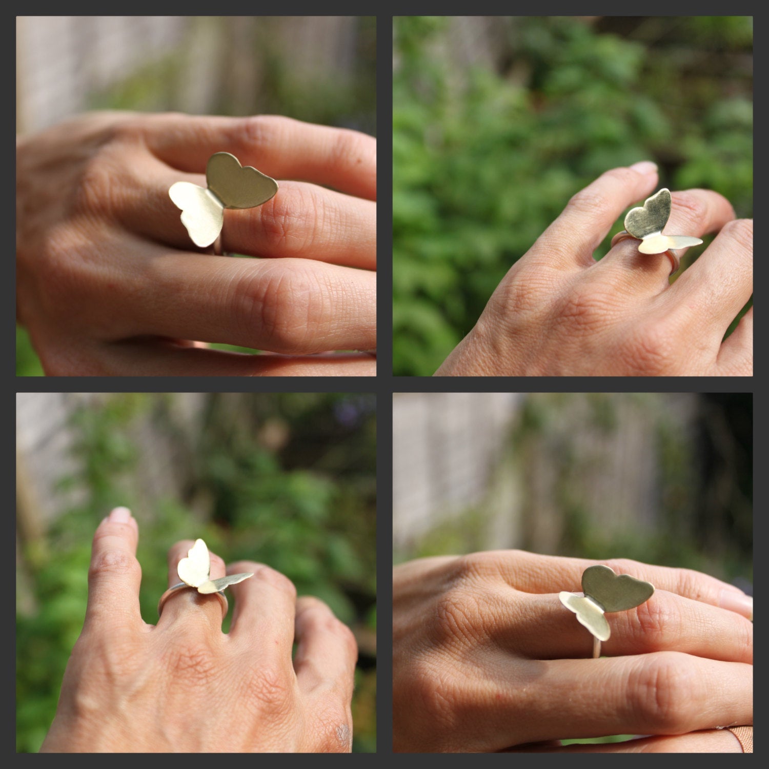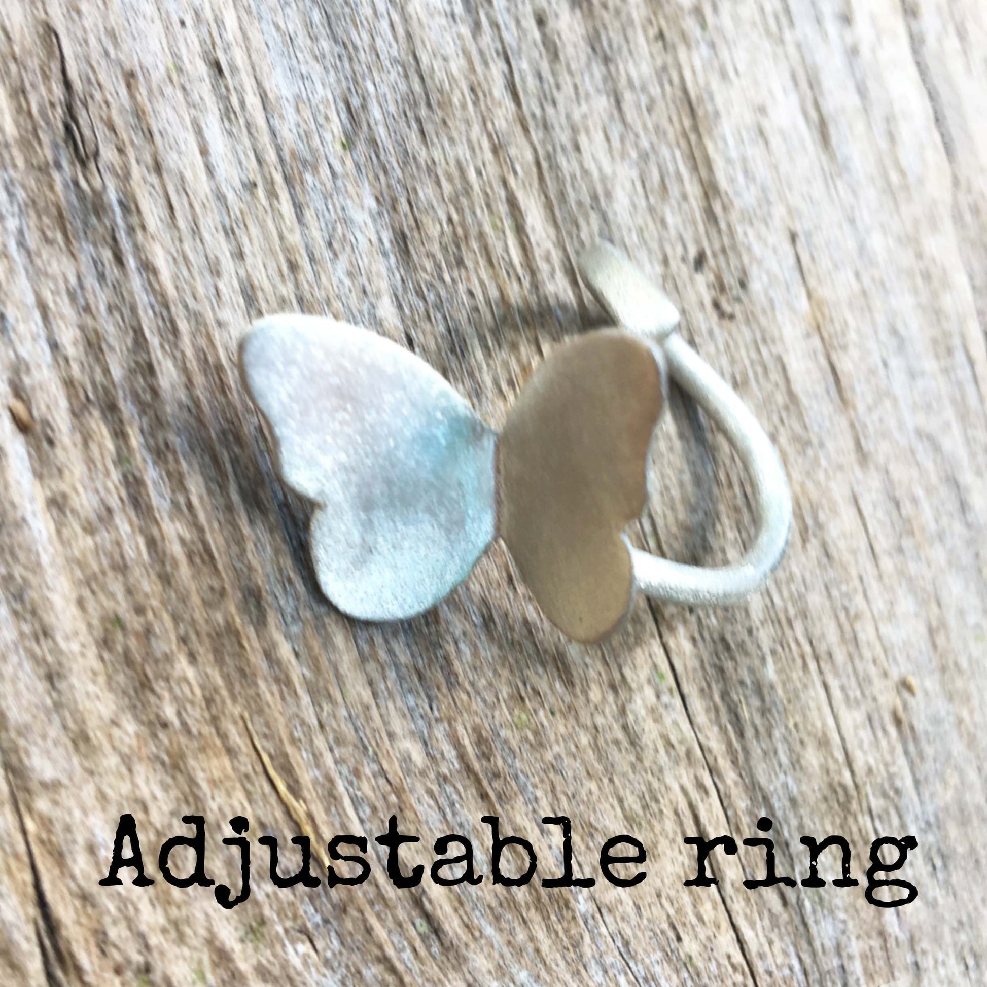 Fen & Co golden butterfly on sterling silver ring made in my studio over looking the woods.
