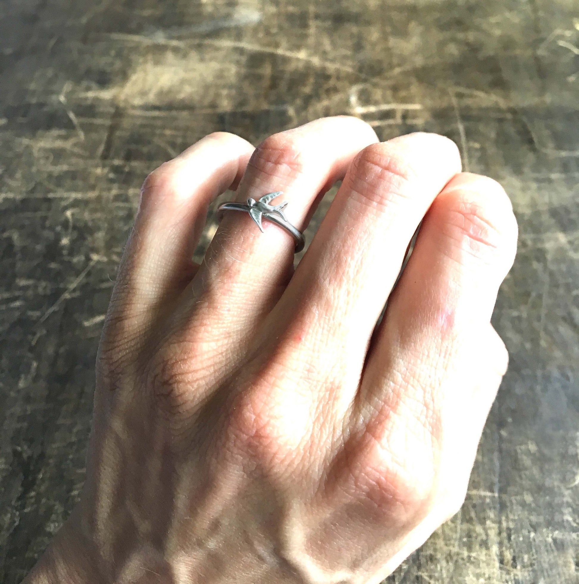 This is a beautiful silver ring with a gorgeously detailed little flying Swallow, a perfect gift for you or a loved one. Its also great for stacking with other fine banded rings. Each ring is made from start to finish by me to fit you perfectly. Rings can also be made adjustable if you are unsure of which size to go for.