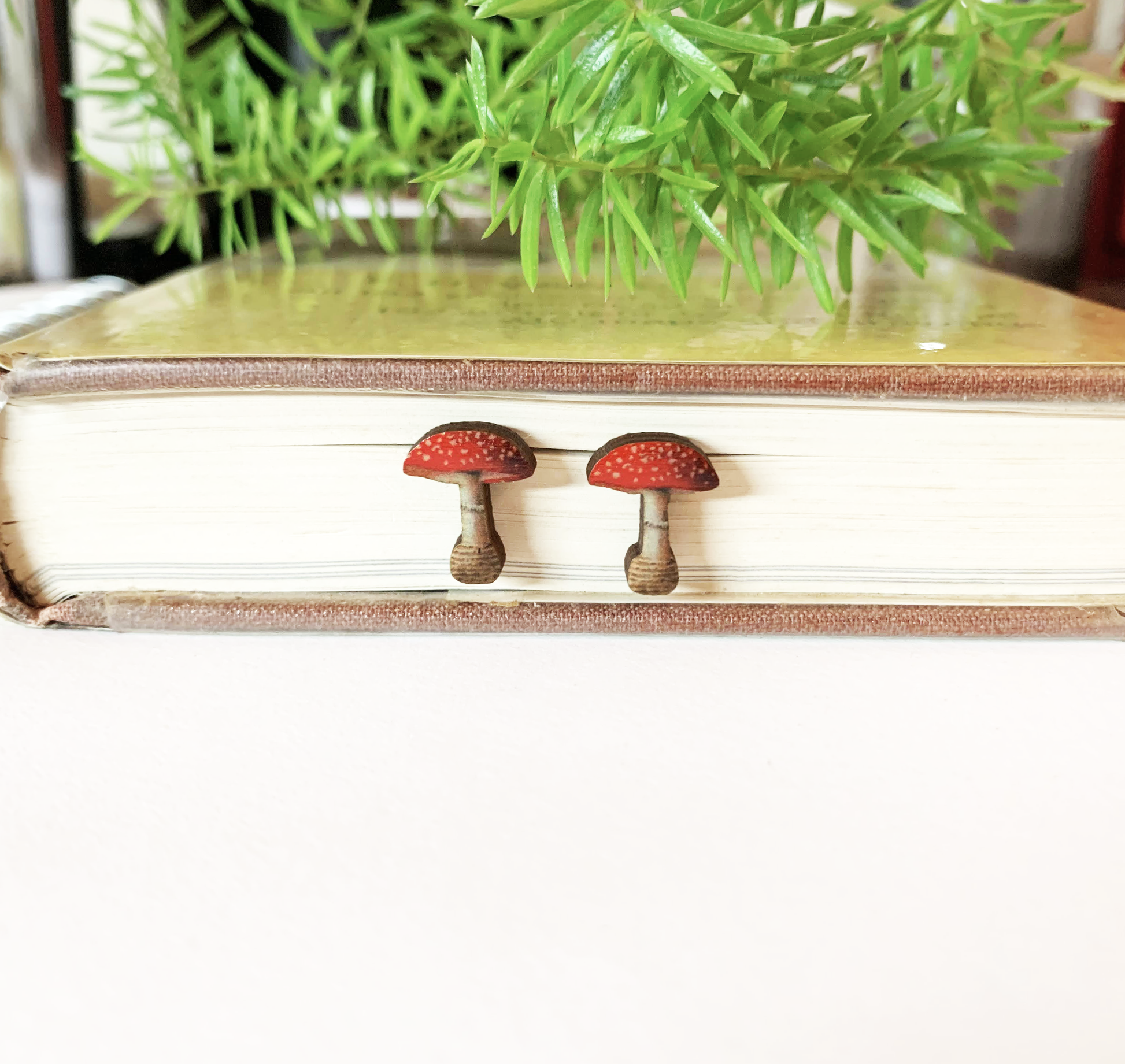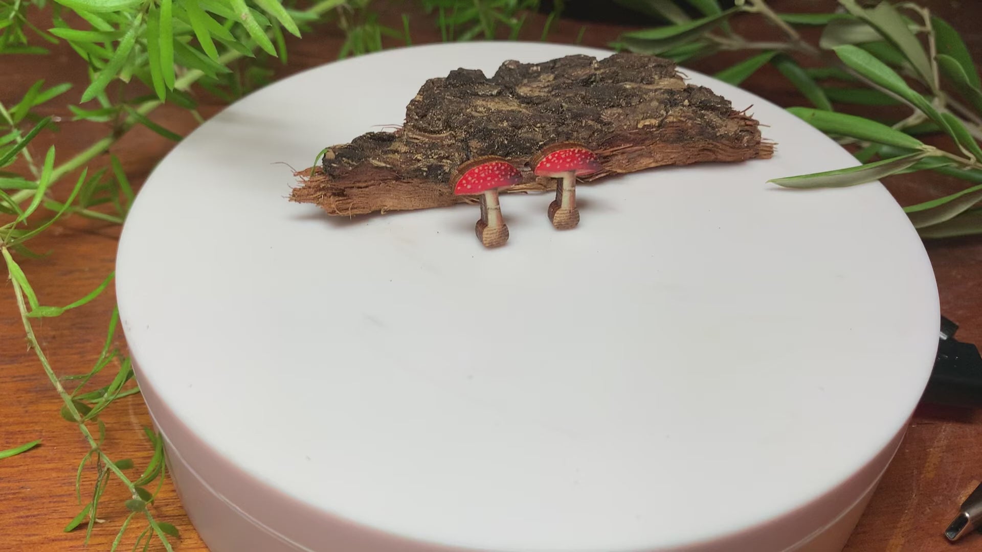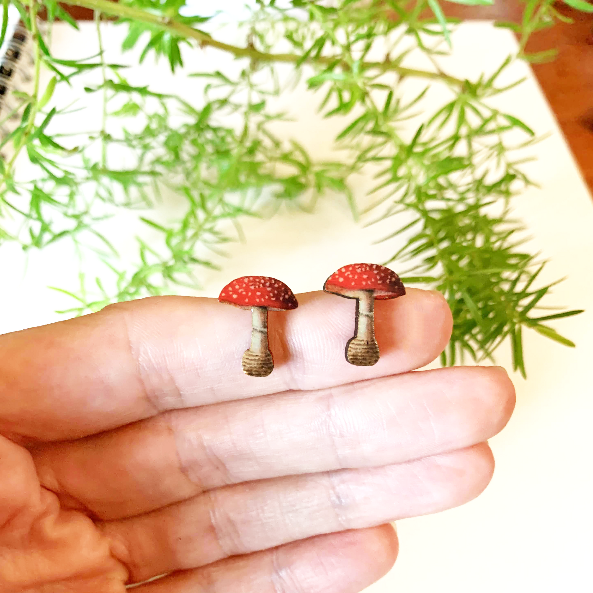 Little Fly Agaric mushroom earrings handmade using eco materials.